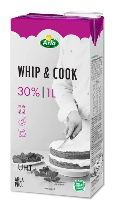 Arla® Pro Whip & Cook is a smooth dairy blend made from skimmed milk and vegetable oil with a mild, creamy flavour. It whips to a high, stable foam, ideal for desserts, cake toppings, and mousses.